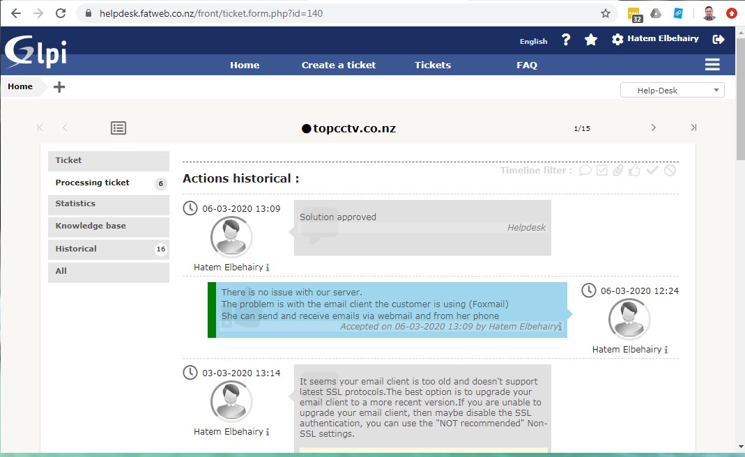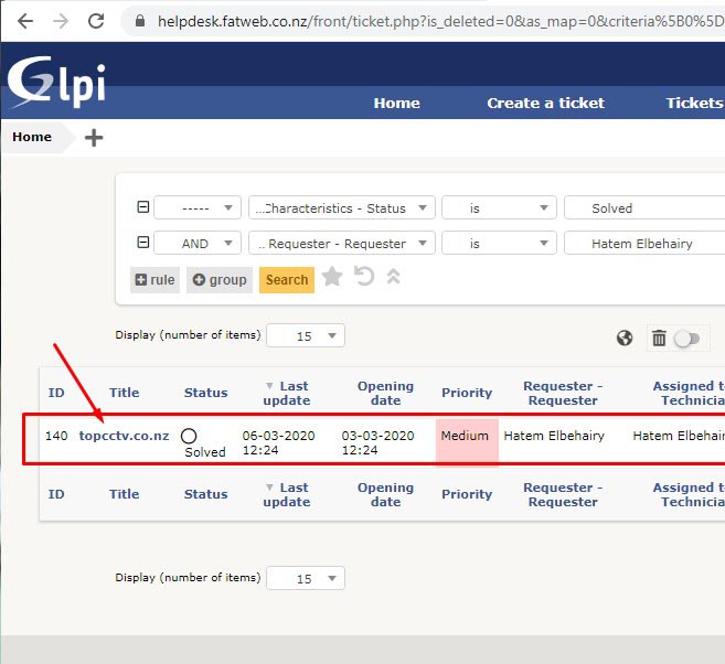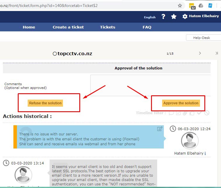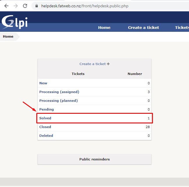 Click on the Solved ticket to open it.