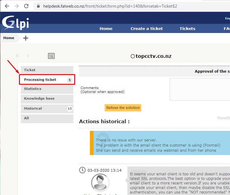 Click on “Processing ticket” to open the followups.